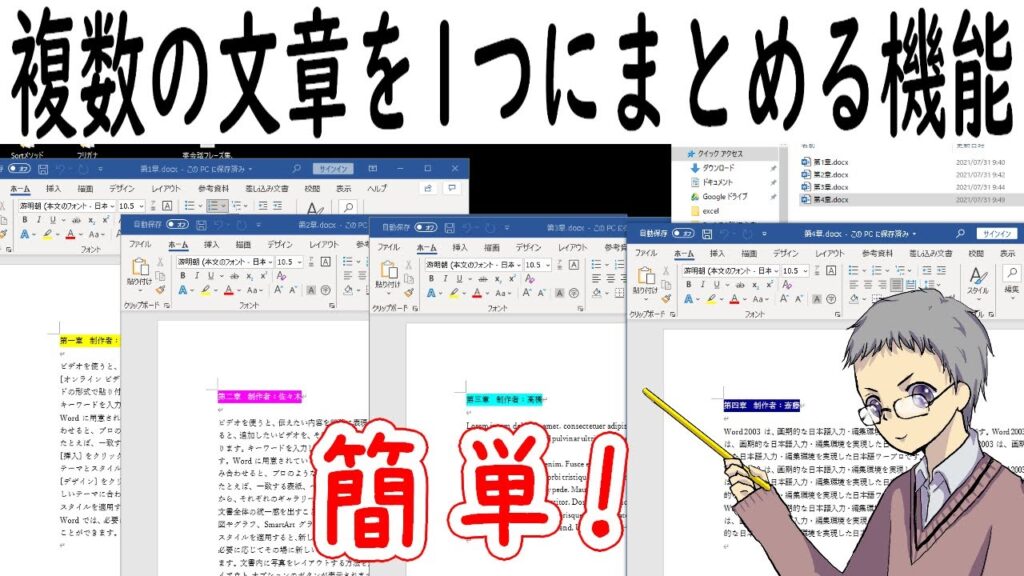 複数の文書を一つにまとめる方法の概要