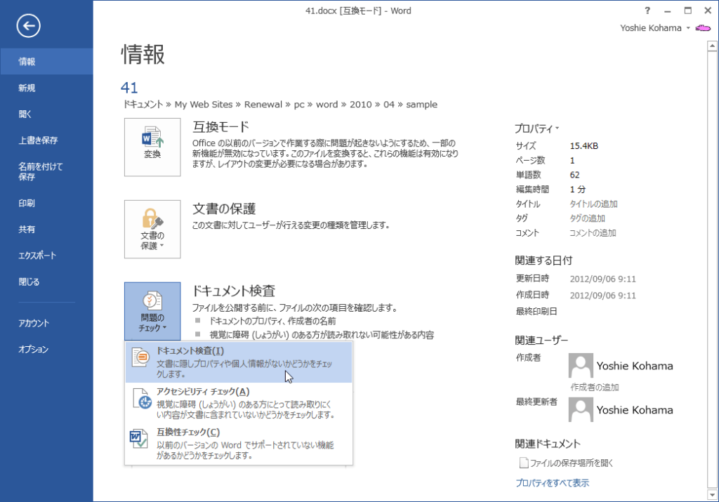 Mac版Wordでメタデータを削除する方法はあるのですか?