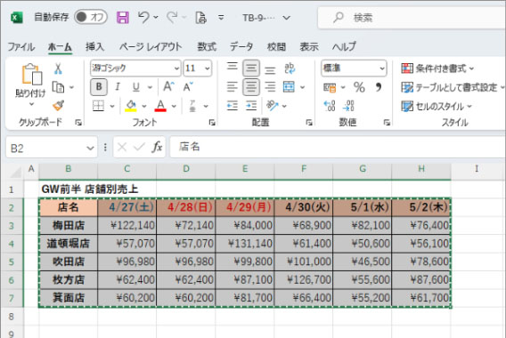 方法1:コピー&ペーストでExcelの表をWordに貼り付ける